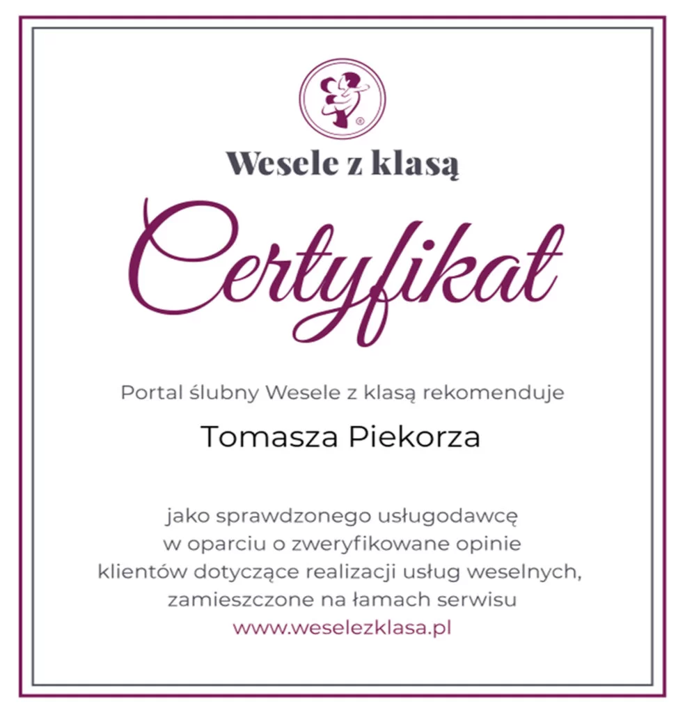 Zostałem wyróżniony jako najlepszy profesjonalista w kategorii fotograf śląsk od portalu ZANK YOU WEDDINGS
